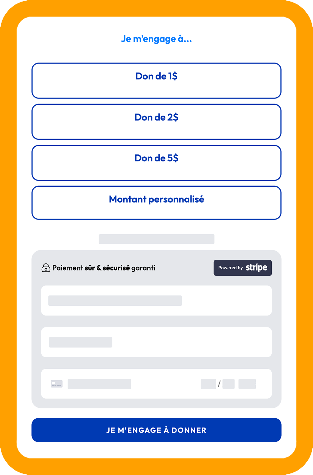 Upon receipt of your donation request related to one of your participants, a donor will have to choose from predefined or a personalized amount. This amount is a commitment according to the effort or the results that will be obtained later by the participant.