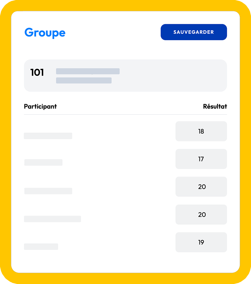 On the day of the event, register the efforts or results obtained by your participants using the user-friendly screen designed for this purpose. Efforts or results can be entered by participants or by groups of participants.